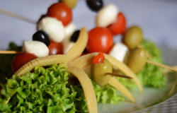 - Szaszłyczki z mini mozarelli i pomidorków koktajlowych